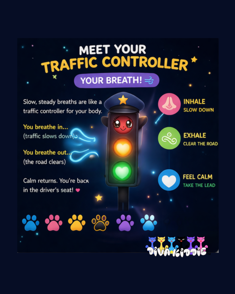 At Diva Kiddie, we introduce mindfulness-based practices in a way that feels fun, accessible, and engaging for children. Meet your child’s emotional traffic controller: the breath.