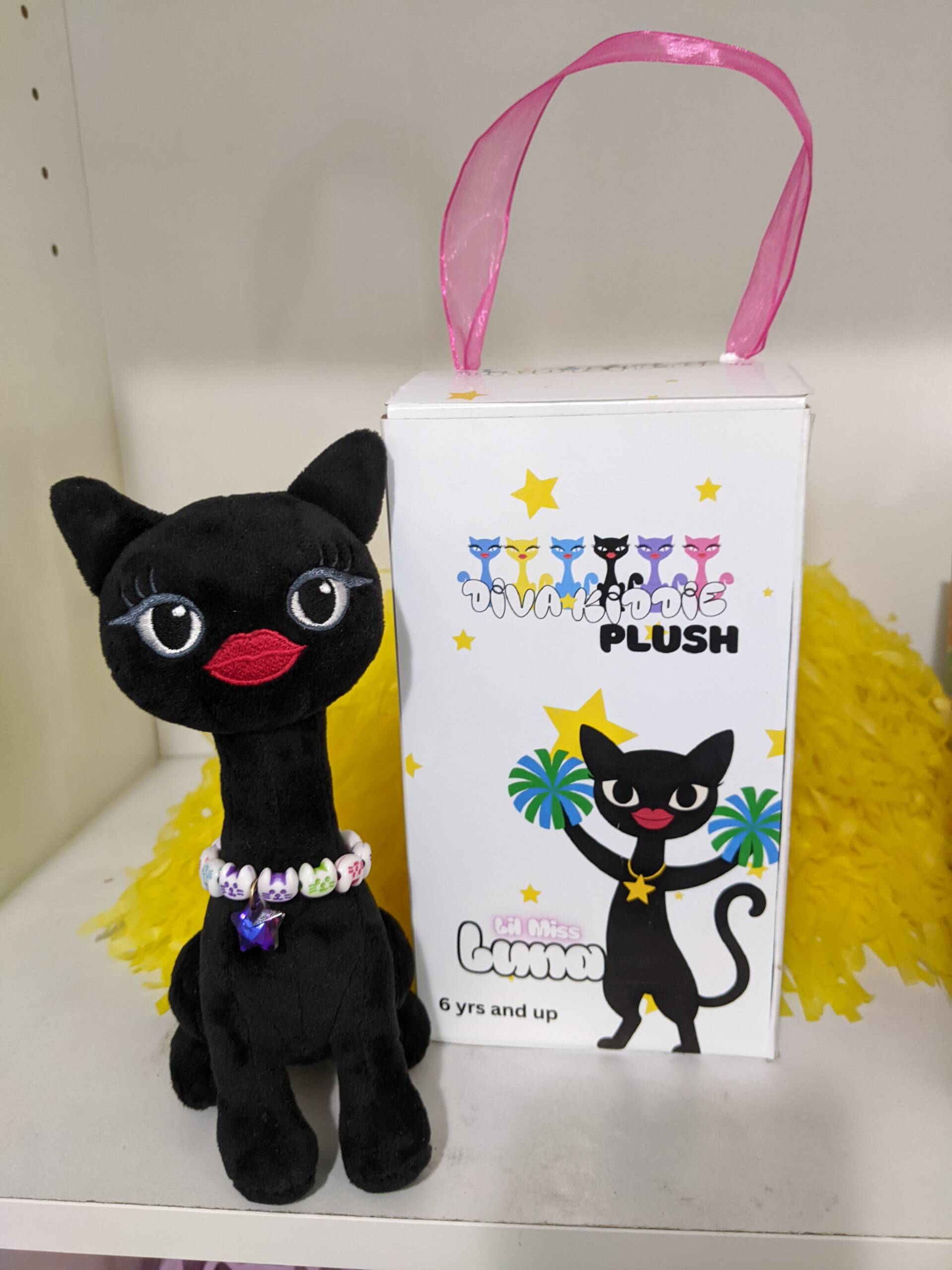 • 6″ Diva Kiddie plush toy with velvety black fur and heartwarming details
